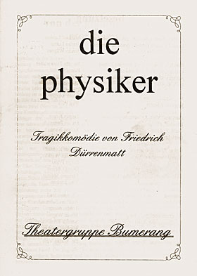 „Die Physiker“ war die erste Produktion der Theatergruppe Bumerang, deren Mitglieder 1996 zum Großteil bereits die Schule verlassen hatten: Die Theatergruppe avancierte so von einem Schultheater zu einer freien Bühne, die jährlich eine Theaterproduktion erarbeitete. Dies erforderte und ermöglichte neue Arbeitsformen, vor allem eine sehr konzentrierte und relativ kurze Erarbeitungsphase.