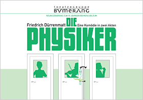 Das Stück „Die Physiker“ von Friedrich Dürrenmatt handelt von drei Bewohnern eines Irrenhauses, die sich für Physiker halten und jeweils ihre Krankenschwestern töten, da diese hinter ihr Geheimnis zu kommen scheinen. Die Physiker geben an, sich nur verrückt zu stellen, damit sie weiterhin frei Forschung betreiben können.Die Theatergruppe entschied sich in diesem Jahr noch einmal „Die Physiker“ aufzuführen. Zum einen, da sich dieses Stück anbot, um mit Verfremdungen und Brechungen zu arbeiten, was gerade in den letzten Produktionen zu einem wichtigen Aspekt der Regiearbeit wurde; zum Anderen, da dieses Stück vor genau 10 Jahren schon einmal gespielt wurde und eine Neuinszenierung sich für dieses 10 jährige Jubiläum anbot.