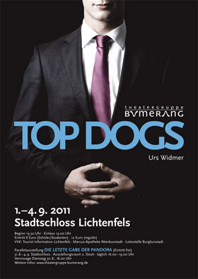 Top Dogs – das sind dynamische, smarte, erfolgsorientierte Führungskräfte, die als Macher unserer Weltwirtschaft Milliardenbeträge vor dem Frühstück umsetzen und auch schon mal 1200 Underdogs vor dem Mittagessen wegrationalisieren – Kollateralschäden im Krieg um die letzten Absatzmärkte eben.